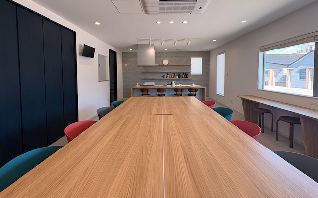 2018年9月、JR東海道線「笠寺」駅近くの弊社敷地内に本社社屋を新築。2階には営業・総務・経理等の各部署がオープンスペースでまとめられており、コミュニケーションがとりやすい環境になっています。3階には勉強会で利用するミーティングルームを完備しています。